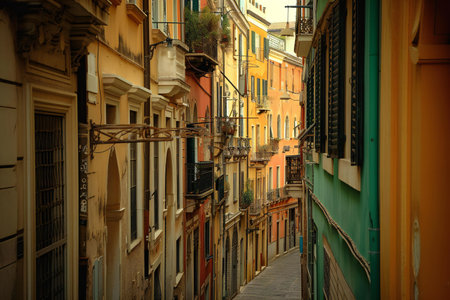 Narrow street in Genoa, Liguria, Italy.