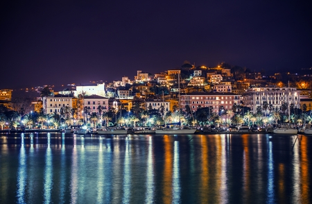 Night in the La Spezia Marina. City of La Spezia Panorama. Liguria, Italy.