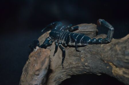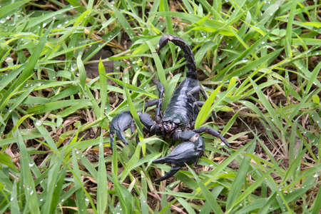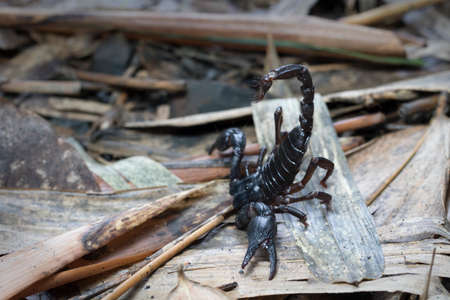 Big black scorpion lives in the wilderness, and hides under a burrow, it is a dangerous reptile that can harm human.