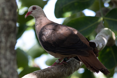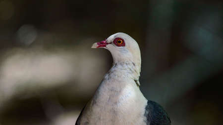 Close up view of a Red knobbed imperial pigeon (Ducula rubricera) bird.