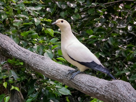 the pied Torresian Imperial Pigeon is all white with black wing tips
