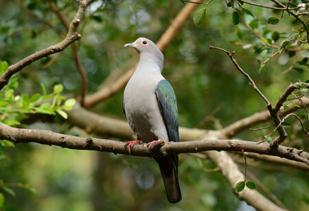 Green imperial pigeon (Ducula aenea) standing on a branch