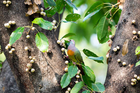 Beautiful Emeral Dove (Ptilinopus jumbu) standing on tree.