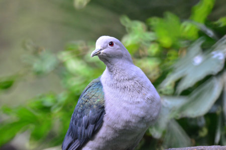 beautiful female Nicobar Pigeon (Caloenas nicobarica) standing on branch