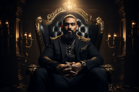 Regal Black king low beard. Man civil celebrate movement poster king. Generate Ai