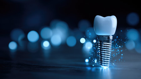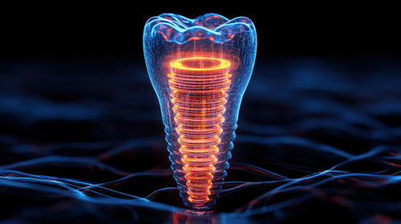 Dental Implant with Glowing Blue Light on Dark Background