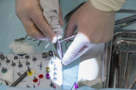 set of instruments for dental implantation on the dentists table