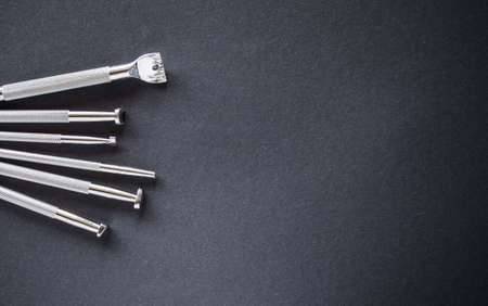Metal leather tools for stamp on black background