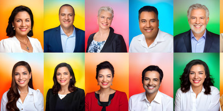 AI generated collection of headshots featuring a diverse range of smiling individuals
