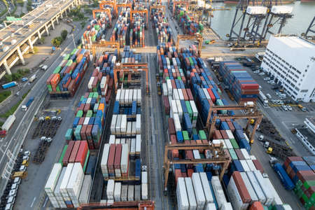 Aerial view of colorful container terminal, trade Industry Hong Kong China