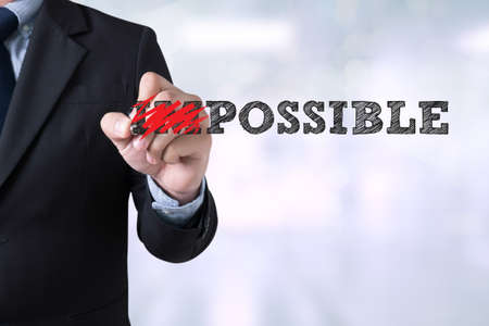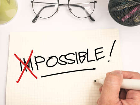 Business concept photo.Changing word impossible to possible. Concepts of problem solving and overcoming challenges.