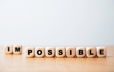 Impossible and possible wording on wooden cube block for changing negative to positive mindset in job and life concept.
