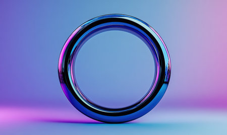 3D icon of an abstract ring, blue and purple gradient background, matte material, high resolution, no shadow on the floor, front view, centered composition, high detail, Octane render, volumetric lighting, studio shot, white lighting, smooth lighting. --ar 5:3 --v 6.1 Job ID: 81d1be7f-1185-448d-b971-777eda1a5c9e