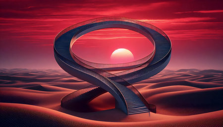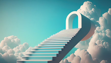 A white staircase stretches up the horizon. That means to be success or go to heaven.