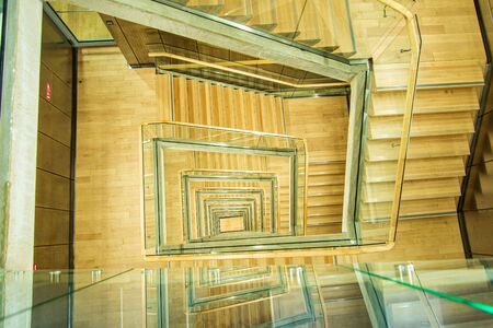 Munich, Germany - December 8, 2017: Endless Stairway Rewriting in KPMG Building in Munich designed by Olafur Eliasson