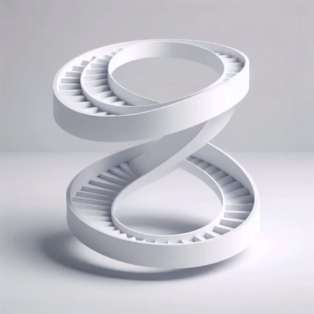 Munich, Germany - Nov 01, 2019: Umschreibung sculpture also called the endless staircase - Work by Olafur Eliasson, 2004 - permanent installation in front of KPMG offices - Munich, Bavaria, Germany