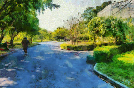 Park landscape Illustrations creates an impressionist style of painting.