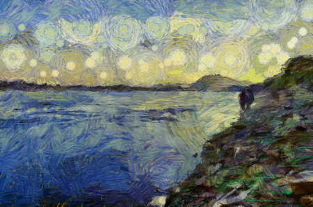 Landscape of the river Illustrations creates an impressionist style of painting.