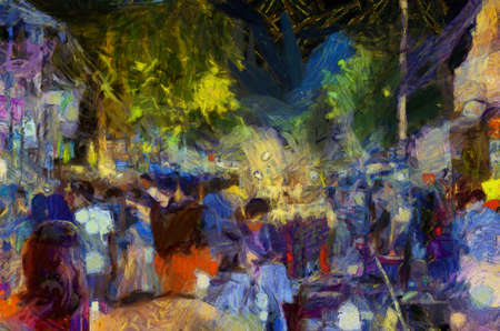 Chiang Mai Walking Street Thailand Handicraft market Illustrations creates an impressionist style of painting.