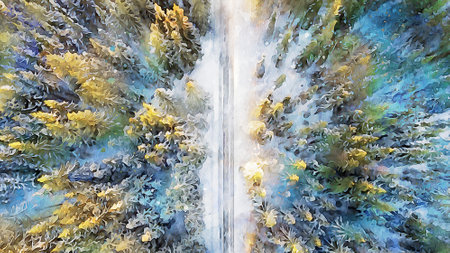 Watercolor and oil painting nature landscape, famous travel and touristic place, outdoor vacation trend print for poster, paper, textile or canvas. Modern fine arts design wallpaper. Wall art drawing