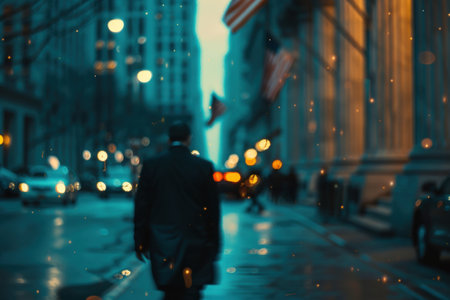 Blurred American holiday lights, creating a festive patriotic atmosphere.