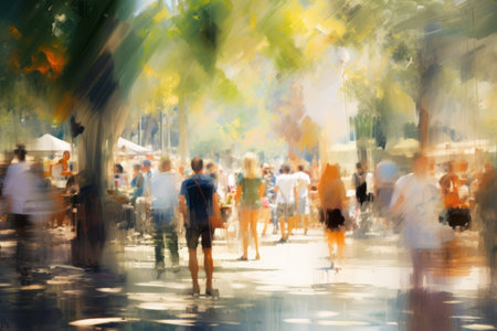 People strolling around the park in the park on a sunny day Illustrations creates an impressionist style of painting.