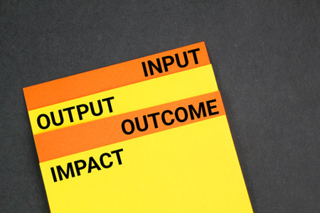 colored paper with the words input, output, outcome and impact. this results chain, inputs are used in order to carry out activities.