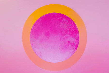 A vibrant circular design showcases a stunning gradient from pink to blue and orange, embodying artistic creativity and color theory.