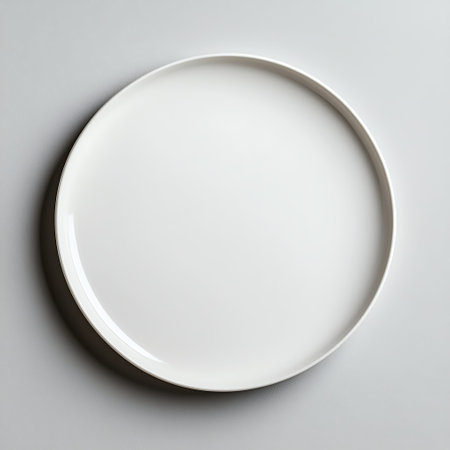 A striking image of a white plate casting delicate shadows on a textured surface, perfect for illustrating minimalist elegance and the art of food presentation in photography.