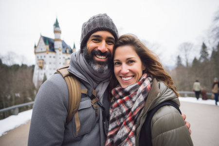 Landscape in Schwanga in bavaria with the kings castle and clouds on the sky and mountain in the background