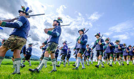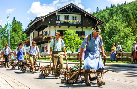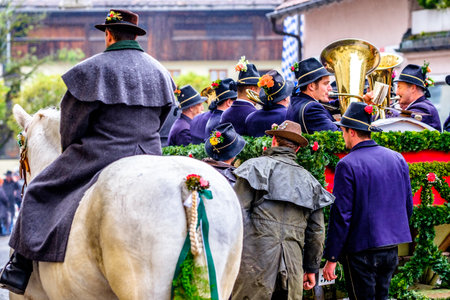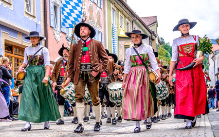 Bad Heilbrunn, Germany - July 14: participants of a typical pageant with traditional clothes in Bad Heilbrunn on July 14, 2019