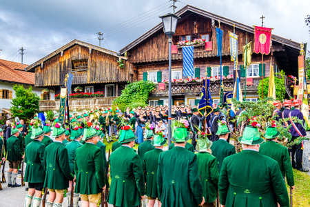 Wackersberg, Germany - June 23: Participants in traditional clothes at the Corpus Christi procession at June 23, 2019 in Bad Toelz - Germany.