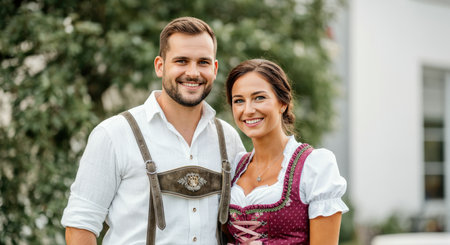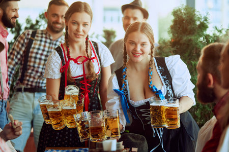 Unidentified people in traditional Bavarian clothes at the oktoberfest in Munich, Germany.