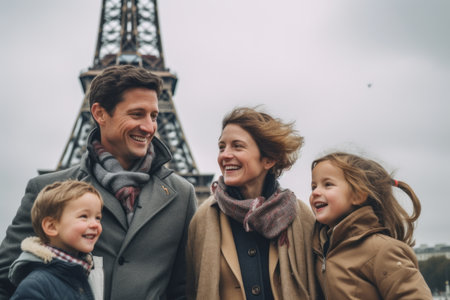 Portrait of a happy family in Paris near the Eiffel tower