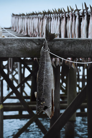 Pack of freshly caught cod fish lying on the ground in Norway, fishing in Norway concept, Efjord, Ballangen, Nordland