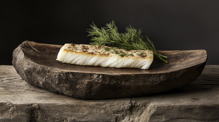 A perfectly pan-seared white fish fillet with crispy golden skin, served on a ceramic plate. Garnished with fresh dill and a lemon wedge, the dish represents a healthy and gourmet seafood meal.