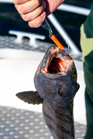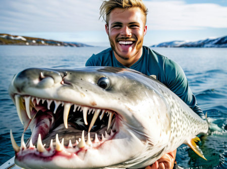 Captivating Capture: Angler Triumphs with Enormous Wolffish in the Breathtaking Waters of Lofoten, Senija, Alta - Norway