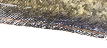 flatfish Pleuronectiformes rests on a white background highlighting its distinct body shape and coloration. This species is notable for its adaptation to a benthic lifestyle.