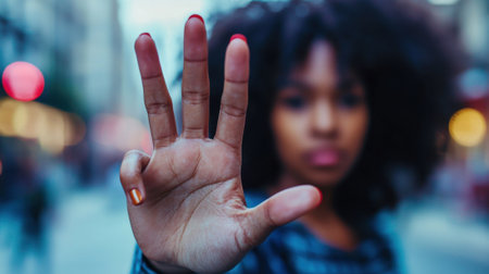 Hand of woman in gesture of support, selective focus