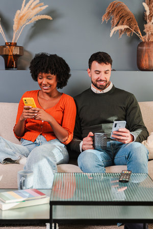 Couple enjoying their time together while using smartphones and engaging with mobile applications