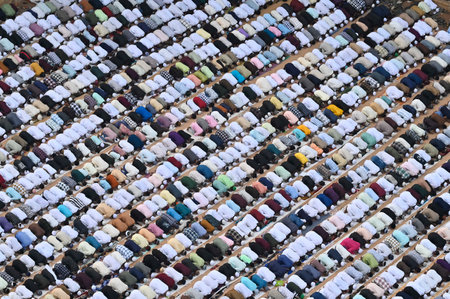 MUMBAI, INDIA - APRIL 11: Muslim offer their namaaz on ocassion of Eid Ul Fitr at YMCA Ground, Bombay Central on April 11, 2024 in Mumbai, India. (Photo by Anshuman Poyrekar/Hindustan Times)