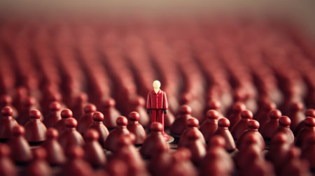 leadership conceptual image, the true leader standing in center surrounding by crowd, standing out of the crowd, miniature toy model. beautiful Generative AI AIG32