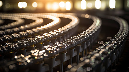 Shiny metallic bottles stacked in abstract pattern generated by artificial intelligence