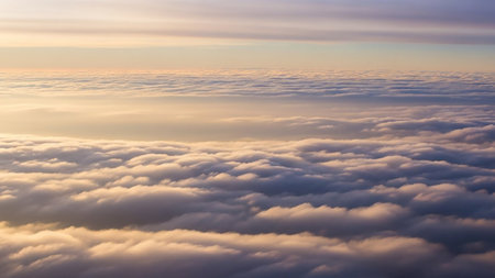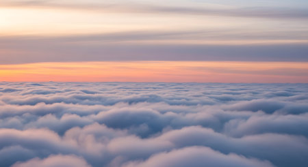 Cloudscape above the horizon at sunrise, serene atmosphere. Natures beauty and tranquility concept