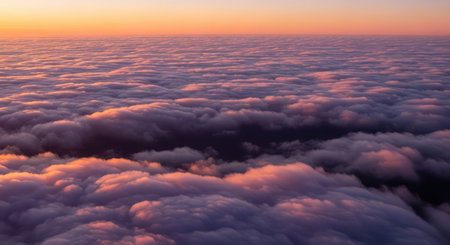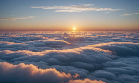 Sunrise showing aerial view of a sea of fluffy clouds at sunrise or sunset. resolution use.