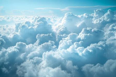 A creative digital illustration depicting Commercial creative design of fluffy white cloud texture billowing softly, seamless aerial view, bright diffused sky light, airy pure whites, dreamy opulent atmosphere, high quality digital art. This AI-generated artwork features unique visual elements suitable for various commercial and editorial applications. AI-generated illustration.