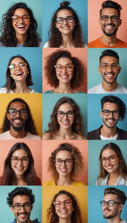 Diverse group of smiling individuals wearing glasses