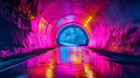 AI Generated. A brightly lit and colorful tunnel perspective view