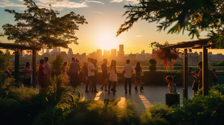 Sunset Salsa Dancing: Vibrant Flowers Couples Sway on Urban Rooftop