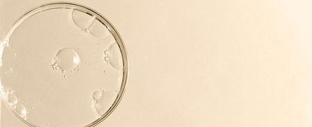 Liquid cosmetic product for the skin in a Petri dish. Copy space.